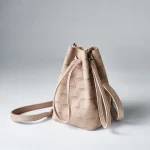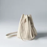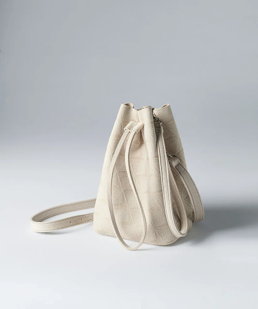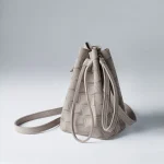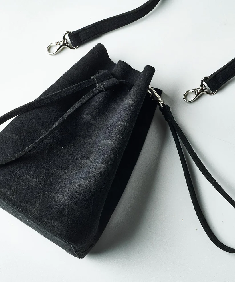 丸みのあるフォルムが印象的な巾着タイプのバッグです。